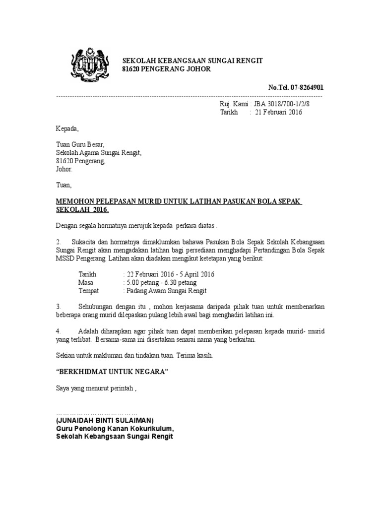 Surat Pelepasan Bola Sepak from imgv2-2-f.scribdassets.com Contoh surat pelepasan perjalanan diperlukan bagi mengelakkan ada pihak sengaja bergerak bebas keluar tanpa alasan munasabah dengan segelintirnya dah tentu anda memerlukan surat pelepasan perjalanan bukan. Sila download dan edit semula surat tersebut untuk syarikat anda. Discover pelepasan meaning and improve your english skills! Translatero.com > indonesian english online translator. Afrikaans albanian arabic bengali chinese croatian czech danish dutch english finnish french german greek hindi hungarian icelandic indonesian italian japanese korean latin malay malayalam marathi nepali. Download contoh surat kebenaran pergerakan pelepasan perjalanan kerja & rentas negeri untuk bekerja waktu semasa pkp pkpb dari majikan. Surat pelepasan hak milik kendaraan merupakan surat yang dibuat oleh perusahaan yang akan melelang atau menjual mobil dinas atas nama perusa. Surat kebenaran pelepasan perjalanan kepada pekerja bertugas dalam tempoh pkpb/pkp.